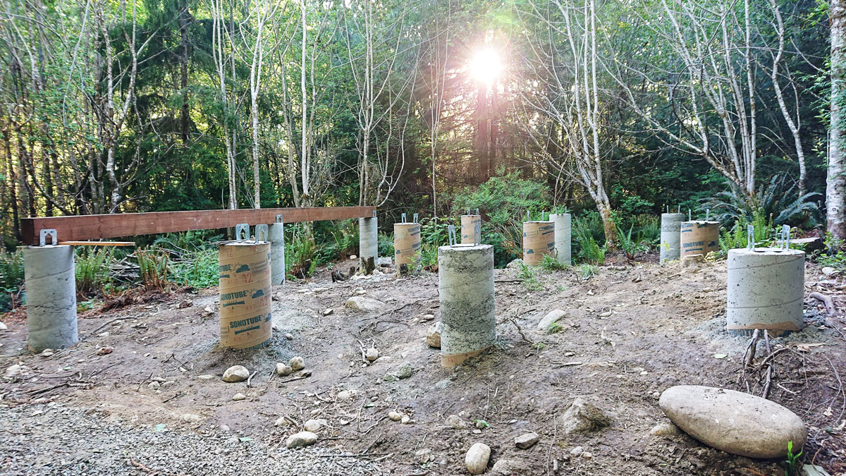 Dalším podobným způsobem zakládání dřevostaveb je založení na betonových patkách, které jsou vility do předem připravené papírové formy. Chceme-li docílit ještě stabilnějšího a poctivějšího základu, může být spodek takové patky provázán ocelovou výztuží. Válcovitá patka je visuálně elegantním řešením.
